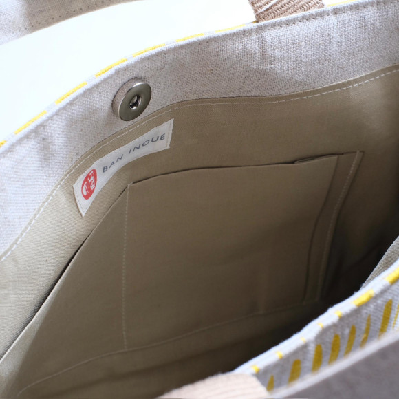 This bag has a chic color that makes use of the natural texture of machine-woven hemp.