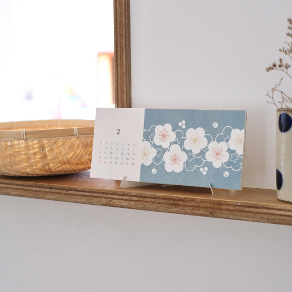 It is a tabletop calendar that cuts out the pattern of the seasonal tenugui of "Kamanu", which develops tenugui and Japanese miscellaneous goods.