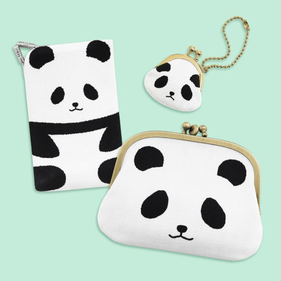 Some items in the popular series that incorporate cute pandas into the mouth are now back! The striped fabric is used for the lining to accent a simple monochrome color. ※Only "Mini Gaguchi Strap" is a black plain lining.